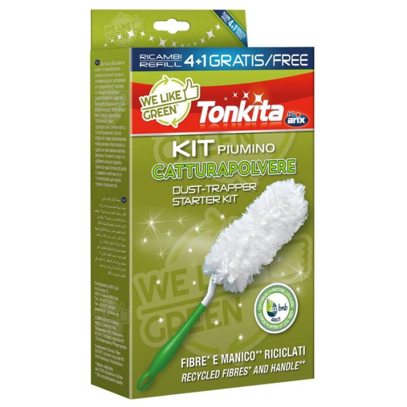 Tonkita We Like Green putekļu slota ar rezervēm ir ekoloģisks putekļu savākšanas komplekts mājai, kas izgatavots no pārstrādātiem materiāliem. Pateicoties īpaši mīksto un elektrostatisko šķiedru kombinācijai ar 3D reljefa joslām, putekļu slota efektīvi piesaista un notur putekļus, matus un sīkus netīrumus no dažādām virsmām. Elastīgā un lokanā galva viegli aizsniedz šauras spraugas un stūrus, tāpēc tā ir ideāli piemērota mēbeļu, grāmatu plauktu, žalūziju, logu rāmju, televizoru un datoru ātrai un saudzīgai tīrīšanai. Ērtais saliekamais kāts nodrošina komfortablu satvērienu un ļauj kompakti uzglabāt slotiņu pēc lietošanas, padarot šo komplektu praktisku ikdienas putekļu tīrīšanai. Komplektā ir vairāki rezerves uzgaļi, kas pagarina produkta lietošanas laiku un uzlabo ekonomiskumu.
