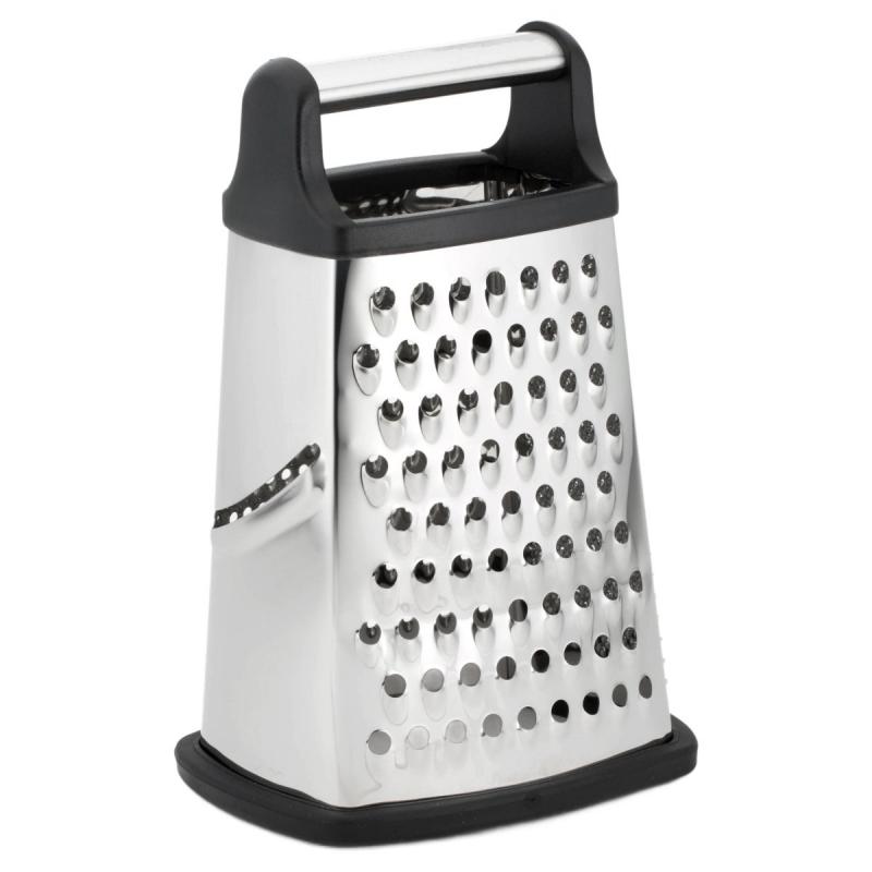 Ketler daudzpusējā rīve ir neaizstājams virtuves palīgs, kas ļauj ērti un ātri sagatavot dažādus ēdienus. Šī funkcionālā rīve aprīkota ar četrām dažādām rīvēšanas virsmām, kas nodrošina iespēju smalcināt sieru, rīvēt dārzeņus, sagatavot citrona miziņu un veikt citus kulinārijas darbus. Nerūsējošā tērauda rīvēšanas virsma garantē izturību, higiēnu un ilgu kalpošanas laiku, savukārt ērtā roktura konstrukcija ar melnu plastmasas apdari nodrošina stabilu satvērienu gatavošanas laikā. Kompaktais dizains ar neslīdošu pamatni ļauj droši izmantot rīvi uz darbvirsmas, neradot skrāpējumus. Izmērs 13 x 11 x 20 cm.
