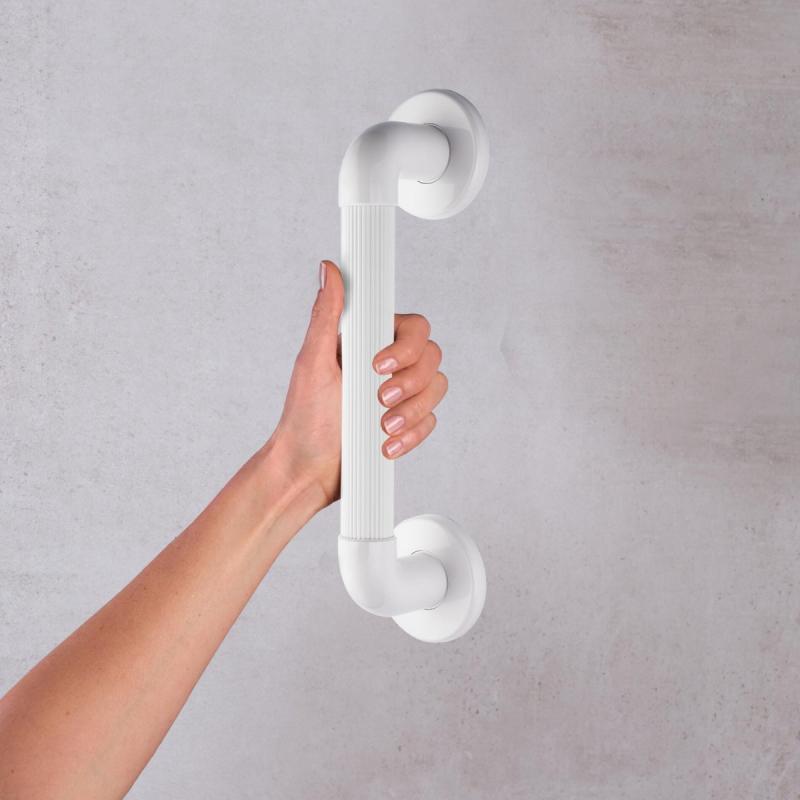 Balts atbalsta rokturis ir īpaši noderīgs senioriem vai cilvēkiem ar invaliditāti. Rokturis ir izgatavots no ABS plastmasas. To var piestiprināt pie vannas istabas sienas, lai palīdzētu iekāpt un izkāpt no vannas, lai droši turētos dušā vai blakus tualetei. Satveršanas zona ir apstrādāta tā, lai nodrošinātu optimālu un drošu satvērienu pat ar mitrām rokām. Komplektācijā iekļautie montāžas materiāli ir piemēroti stiprināšanai pie M20 cieta ķieģeļa vai dzelzsbetona. Satveršanas zonas garums 30 cm, diametrs 3.5 cm, augstums 9.5 cm, sienas kronšteinu diametrs 9 cm. Maksimālais pieļaujamais lietotāja ķermeņa svars 100 kg.