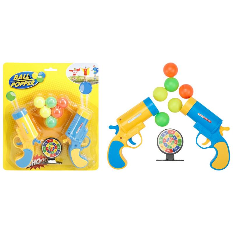 Rotaļlieta šaušanas komplekts ar bumbiņām ir aizraujoša aktivitāte bērniem, kas veicina kustību koordināciju un mērķēšanas prasmes. Komplektā ietilpst divi rotaļu ieroči, vairākas vieglas bumbiņas un mērķis, kas ļauj rīkot jautras sacensības gan telpās, gan ārā. Bumbiņas ir drošas un mīkstas, padarot spēli piemērotu bērniem. Izgatavots no izturīga un droša polipropilēna materiāla, kas nodrošina ilgmūžību un drošu lietošanu.
