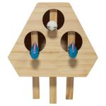 Besk interaktīvā koka rotaļlieta kaķiem veicina kaķa dabisko medību instinktu un nodrošina gan fizisku, gan garīgu aktivitāti mājas apstākļos. Spiežot kustīgos kloķus, no atverēm parādās figūriņas, kas izaicina kaķi tās medīt un uztur interesi ilgāku laikā. Koka konstrukcija ir stabila un izturīga, piemērota ikdienas rotaļām ar aktīviem kaķiem, vienlaikus iederoties mājas interjerā. Šī interaktīvā kaķu rotaļlieta palīdz mazināt garlaicību, stresu un destruktīvu uzvedību, aizvietojot vienkāršas bumbiņas ar aizraujošu uzdevumu.