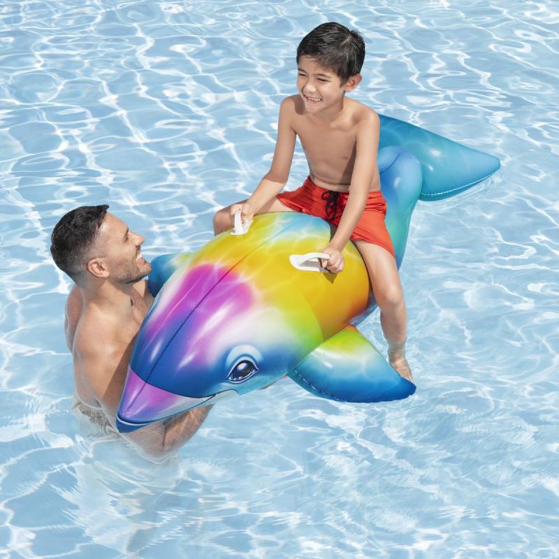 Bestway piepūšamais peldēšanas delfīns ir krāsains un draudzīgs sabiedrotais bērniem, kas mīl ūdenspriekus. Varavīksnes toņu delfīns uzreiz piesaista uzmanību un rada jautru vasaras noskaņu gan baseinā, gan ezerā vai jūrā. Spilgtā rotaļlieta palīdz bērniem justies drošāk uz ūdens un padara katru peldēšanās reizi par aizraujošu piedzīvojumu.