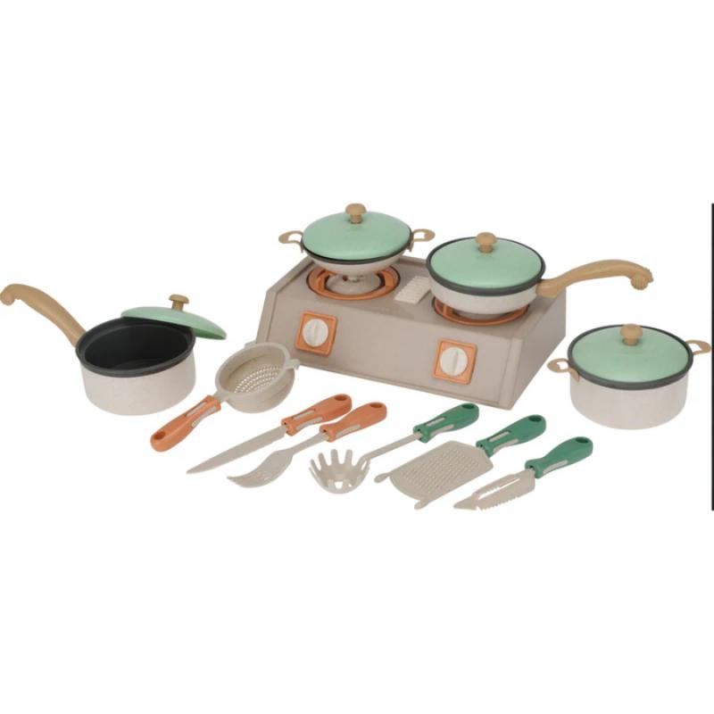 Rotaļu trauku komplekts ir lieliska izvēle bērniem, kuriem patīk spēlēt mājas un attīstīt sociālās prasmes caur lomu spēlēm. Komplektā ietilpst rūpīgi izstrādāti trauki, krūzītes, tējkanna, karotes un citi piederumi, kas piemēroti tējas vai ēdiena pasniegšanas rotaļām. Rotaļlietas dizains ir veidots mierīgās, saskaņotās krāsās, kas veicina estētisku un mierīgu rotaļvidi. Katrs komplekta elements ir veidots bērnam drošā formā un izmērā, kas palīdz attīstīt motoriku un radošo domāšanu. Ideāli piemērots gan individuālām, gan grupu rotaļām mājās vai bērnudārzā.