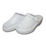 "Sabo kurpes baltas, perforetas, PU zole Perferētā augšējā daļa ir izgatavota no dabīgas ādas ar slāni, kas ir izturīgs pret tīrīšanas Odere ir izgatavota no dabiskās zamšādas Siksnai divas funkcijas: pāri papēdim un pāri apavu augšdaļai Augšdaļa un zole savienota ar manuālo šūšanu Ar neslīdošu zoli Zole izturīgas pret eļļām, augu un dzīvnieku taukiem PU zole ar ortopēdisku profilu Svars 0.63kg"