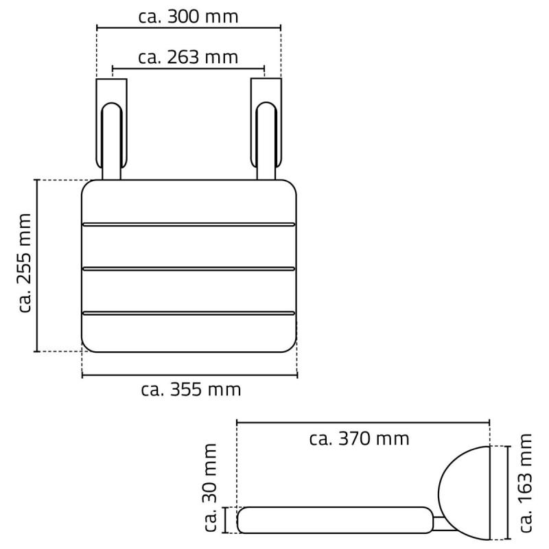 Nolokāmais dušas sēdeklis ir lieliski piemērots senioriem vai cilvēkiem, kuriem nepieciešams atbalsts dušā un mazgājoties, vai vienkārši kā ērts sēdeklis losjona uzklāšanas vai skūšanās laikā. Vizuāli iederas jebkurā vannas istabā un, pateicoties salokāmajai funkcijai, ietaupa vietu. Izgatavots no polipropilēna (PP) un alumīnija. Komplektācijā iekļautie montāžas materiāli ir piemēroti stiprināšanai pie M20 cieta ķieģeļa vai dzelzsbetona. Sēdekļa izmērs aptuveni 35.5 x 25.5 x 3 cm, sienas kronšteinu izmērs aptuveni 16.3 x 3.8 x 8 cm. Maksimālais pieļaujamais lietotāja ķermeņa svars 125 kg.
