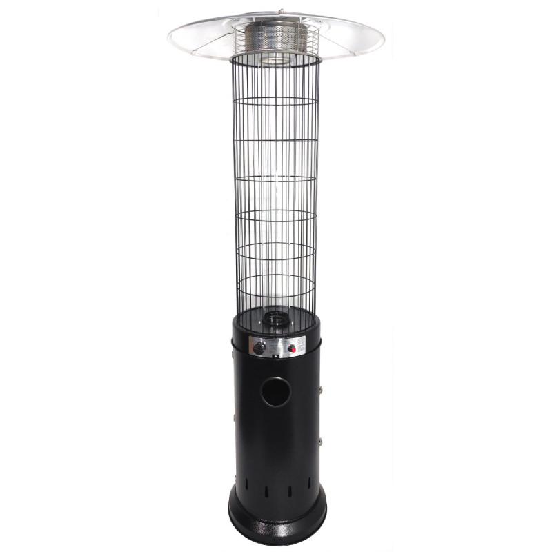 Besk terases gāzes sildītājs ar stikla ietvaru CZGB-D1 ir jaudīgs un vizuāli pievilcīgs risinājums āra zonu apsildei. Vertikālais cilindriskās formas dizains ar caurspīdīgu stikla cauruli un metāla aizsargrežģi veido redzamu liesmas efektu, kas vienlaikus silda un rada mājīgu gaisotni. Melnais korpuss ar augšējo reflektoru harmoniski iekļaujas dažādos āra interjeros privātmāju terasēs, kafejnīcu un restorānu āra sēdvietās vai pasākumu zonās.