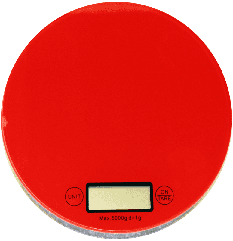 Svari virtuves digitālie 5kg apaļi, sarkani