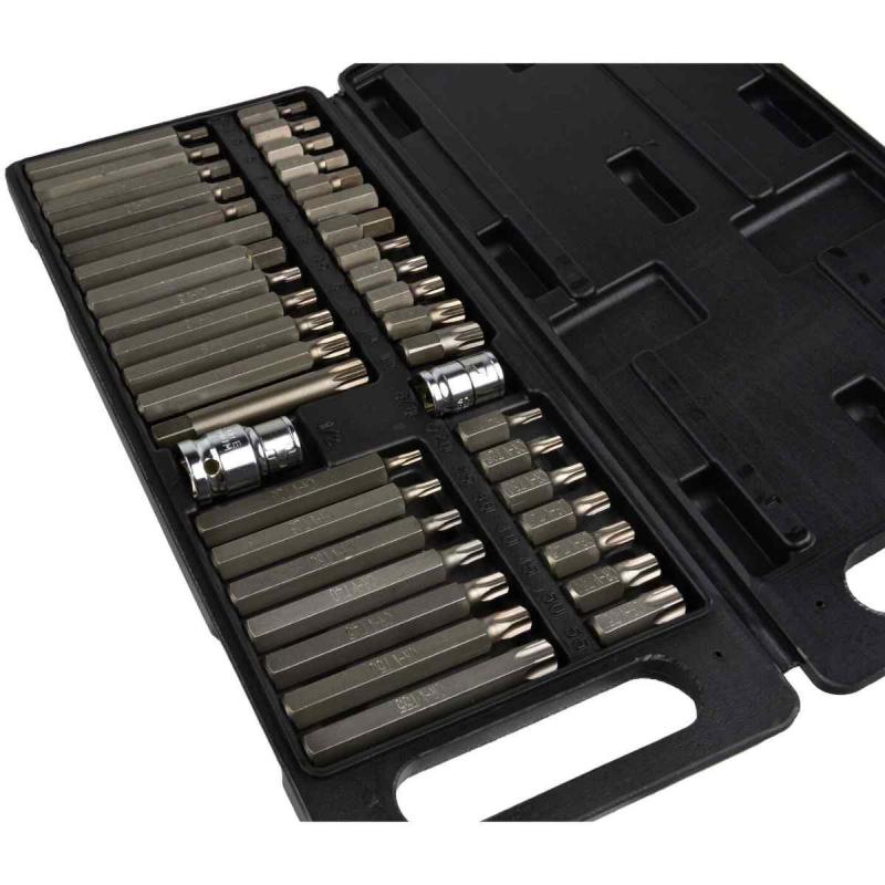 Uzgaļu komplekts, kurā ir Hex, XZN un Torx uzgaļi ar vienu garu un vienu īsu uzgali katram izmēram. Izgatavots no hroma vanādija sakausējuma tērauda.