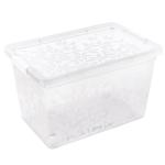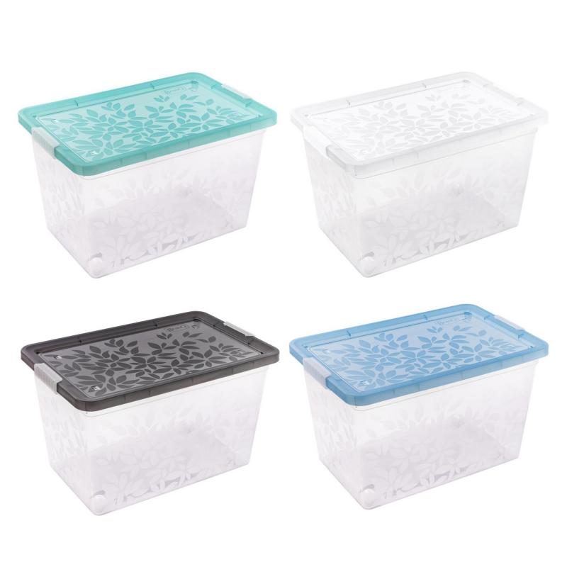 Īpaši parocīga uzglabāšanas kaste ar vāku un riteņiem. Izgatavota no augstas kvalitātes plastmasas. Efektīvi aizsargā tajā uzglabātos priekšmetus pret putekļiem, mitrumu un netīrumiem. Tai ir speciāli, profilēti padziļinājumi, pateicoties kuriem varat sakraut vienu kasti virs otras, neuztraucoties par aizripošanu. Skapī to var izmantot nelielu aksesuāru un rotaslietu uzglabāšanai. Bērnu istabās tā būs lieliski piemērota automašīnām, klucīšiem un citām rotaļlietām.