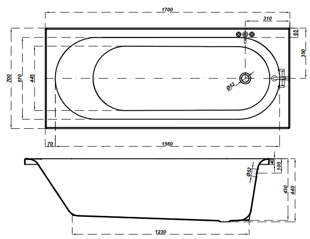 OCTAVIA 150 vannai ir plašas, noapaļotas malas, kas nodrošina ērtu ķermeņa stāju vannā. Sānu ūdens izplūde atrodas pie īsākās puses. Vannai ir regulējama augstuma kājas. Dziļums līdz apakšai 43 cm, garums 170 cm, platums 70 cm, tilpums 180 l. Vannas paneli var iegādāties atsevišķi.
