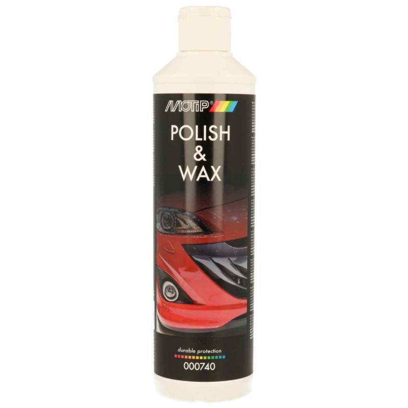 Viegli aizsargājiet un atjaunojiet automašīnas lakotu virsmu spīdumu ar Motip Polish & Wax. Līzeklis aizsargā pret laikapstākļiem, nodrošina spīdumu, samazina netīrumu saķeri. Tas satur silikonus. Pirms lietošanas labi sakratiet. Apstrādāmajai virsmai jābūt tīrai un sausai. Uzklājiet līdzekli ar mitru drānu plānā, vienmērīgā kārtā un ļaujiet nožūt. Nopulējiet ar sausu, tīru drānu.