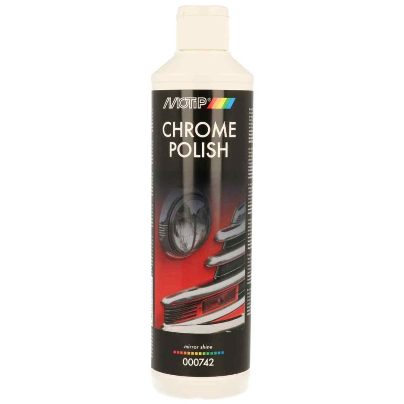 Viegli notīriet automašīnas hromētās daļas ar Motip Chrome Polish. Līdzeklis piešķir automašīnas hromētajām daļām spīdumu un aizsargā pret laikapstākļiem. Tas samazina netīrumu pielipšanu, nesatur šķīdinātājus, satur silikonus. Pirms lietošanas labi sakratiet. Uzklājiet līdzekli ar sausu drānu un pulējiet līdz virsma ir tīra. Ļaujiet nožūt un nopulējiet līdz spīdumam ar sausu, tīru drānu.