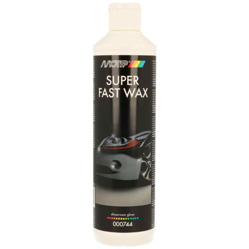 Viegli aizsargājiet un atjaunojiet automašīnas lakotu virsmu spīdumu, izmantojot produktu Motip Superfast Wax. Super Fast Wax aizsargā pret laikapstākļiem, piešķir spīdumu, samazina netīrumu saķeri. Līdzeklis satur silikonus. Pirms lietošanas labi sakratiet. Apstrādāmajai virsmai jābūt tīrai un sausai. Uzklājiet līdzekli ar mitru drānu plānā, vienmērīgā kārtā un ļaujiet nožūt. Nopulējiet ar sausu, tīru drānu.