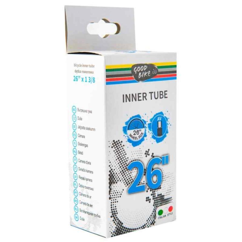 Good Bike velosipēda kamera ir piemērota ikdienas braucieniem un nodrošina uzticamu hermētiskumu pat intensīvi izmantojot. Tā paredzēta 26 collu ritenim ar 1 3/8 collu platumu, nodrošinot saderību ar klasiskā tipa velosipēdiem. Kamera izgatavota no dabīgās gumijas, kas izceļas ar elastību un augstu izturību pret caurduršanu. Schradera tipa vārsts ļauj to viegli piepumpēt ar standarta automobiļu pumpjiem vai kompresoriem. Izmērs 26 × 1 3/8, vārsta garums 40 mm.