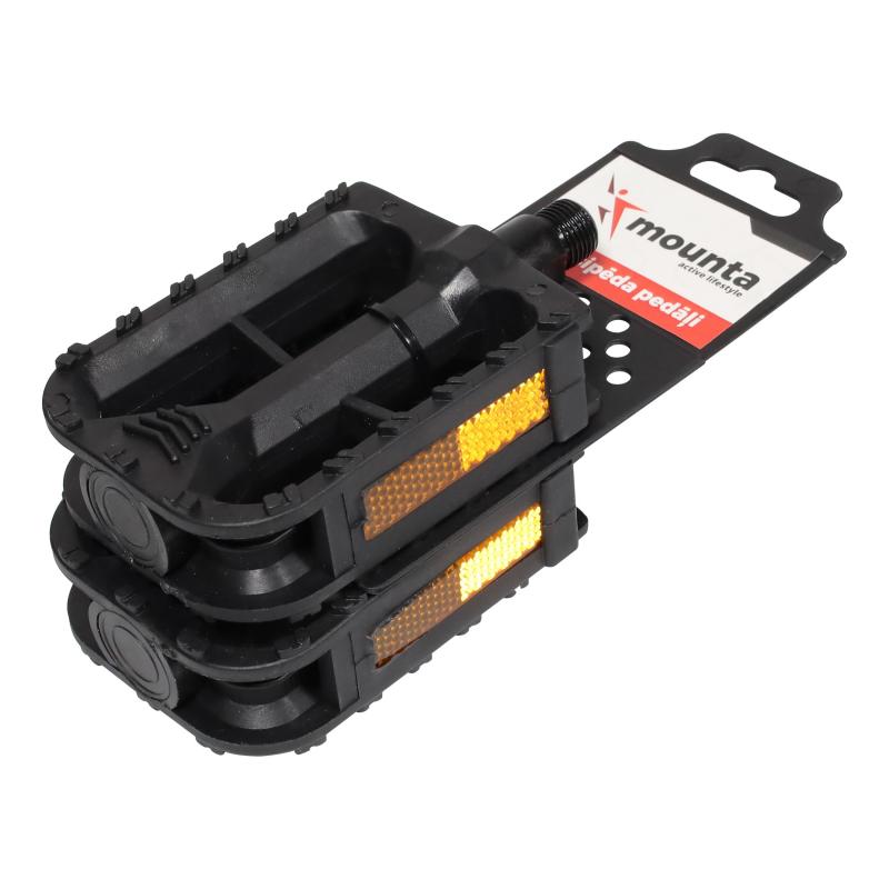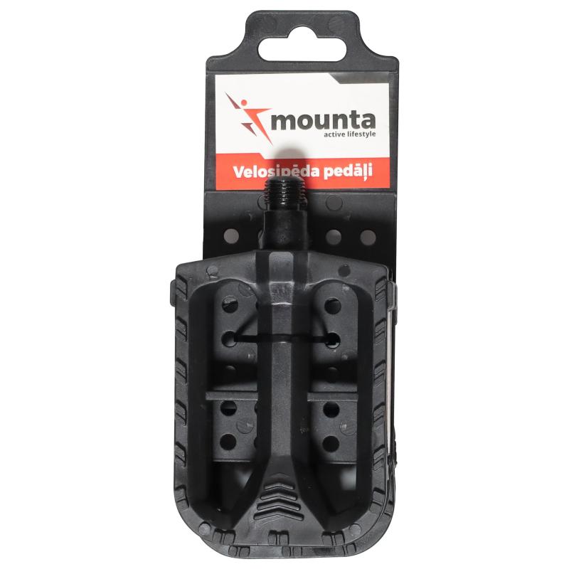 Mounta velosipēda pedāļi ir uzticams risinājums gan pilsētas, gan brīvā laika braucieniem. Šie pedāļi nodrošina stabilu atbalstu un ērtu saķeri ar apaviem, kas ir svarīgi drošai un komfortablai braukšanai dažādos apstākļos. Katra pedāļa sānos iestrādātie atstarotāji uzlabo velosipēdista redzamību satiksmē un palielina drošību tumsā vai pie sliktas redzamības. Pedāļus var viegli uzstādīt uz lielākās daļas standarta velosipēdu. Komplektā 2 gabali.