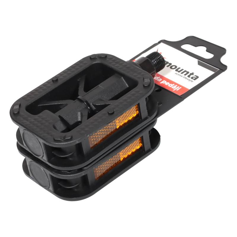 Mounta velosipēda pedāļi ir piemēroti drošiem un komfortabliem braucieniem gan pilsētā, gan ārpus tās. Pedāļi nodrošina stabilu kājas atbalstu un labu saķeri ar apaviem, kas ir svarīgi ikdienas lietošanai un sportiskām aktivitātēm. Iebūvētie atstarotāji palīdz uzlabot redzamību satiksmē, palielinot drošību tumsā vai krēslā. Šie izturīgie pedāļi ir viegli uzstādāmi un piemēroti lielākajai daļai standarta velosipēdu. Komplektā 2 gabali.