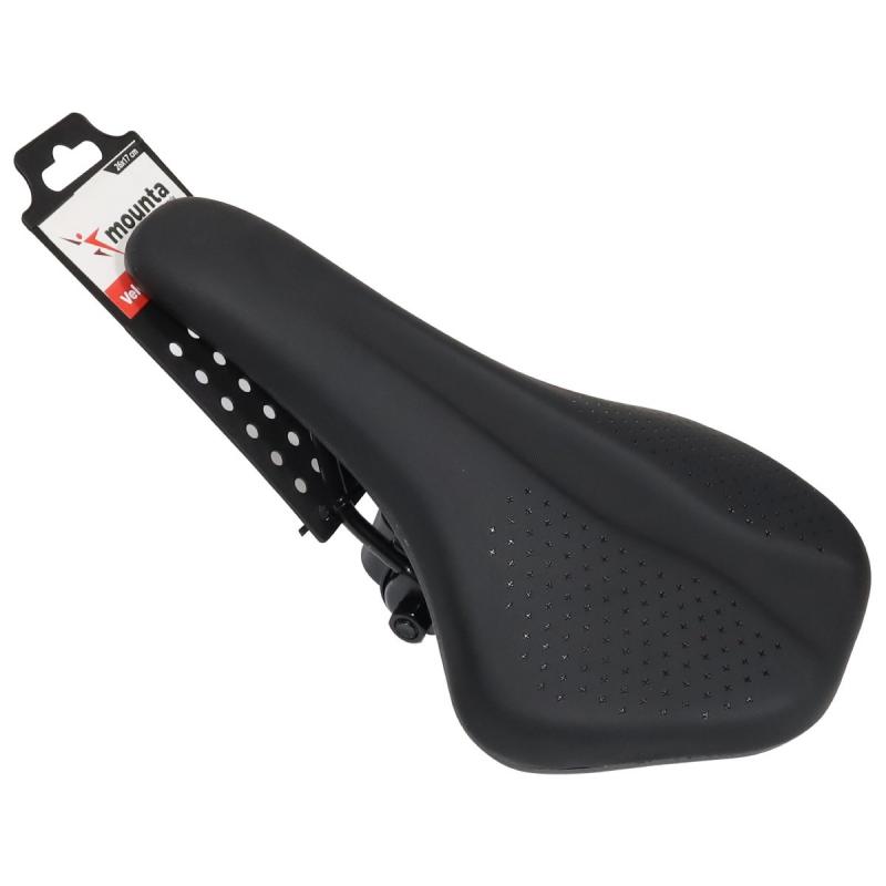 Mounta velosipēda sēdeklis ar sportisku dizainu piemērots gan aktīvai braukšanai, gan ikdienas lietošanai, nodrošinot komfortu un stabilitāti arī ilgākos izbraucienos. Ergonomiskā forma un ventilācijas punkti samazina diskomfortu, uzlabo gaisa cirkulāciju un pielāgojas braucēja ķermenim. Sēdeklis ir izgatavots no izturīgiem materiāliem, kas garantē ilgmūžību un vienkāršu kopšanu, bet melnā krāsa piešķir universālu izskatu. Viegli uzstādāms uz dažādiem velosipēdu modeļiem. Izmērs 26 x 17 cm.