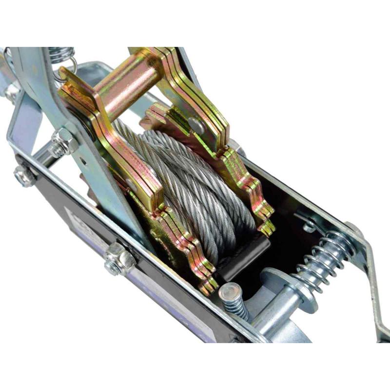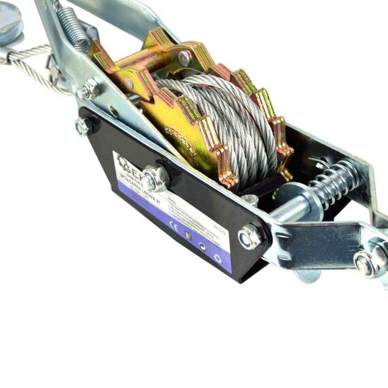 Manuāla horizontāla troses vinča. Vinča ir aprīkota ar 2 režīmu bloķēšanas mehānismu, tērauda trosi ar diametru 4.5 mm un garumu 2.5 m, kas apvienojumā ar izturīgiem āķiem rada 2000 kg lielu vilkšanas spēku.