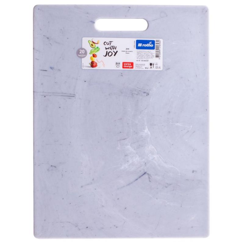 Rotho virtuves dēlis ir izturīgs un stilīgs palīgrīks ikdienas ēdiena gatavošanai. Gaišā marmora krāsā veidotais dēlis piešķir virtuvei elegantu akcentu, savukārt tā stabilā virsma nodrošina drošu griešanu un smalcināšanu. Neslīdošie uzgaļi dēļa apakšā garantē stingru saķeri ar darba virsmu, novēršot kustības gatavošanas laikā. Izturīgā plastmasa ir piemērota saskarei ar pārtiku, nesatur BPA un ir viegli tīrāma trauku mazgājamajā mašīnā. Izmērs 36 x 27 x 1 cm.