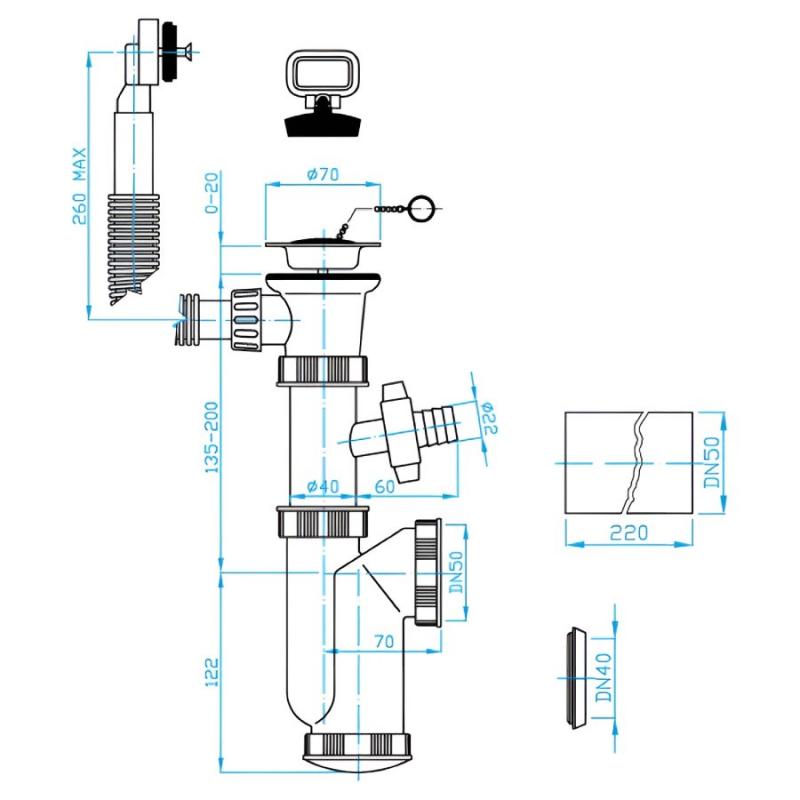 Plastbrno virtuves izlietnes pudeļsifons ED11452 ir funkcionāls un izturīgs risinājums ar integrētu izplūdi un pārplūdi, nodrošinot drošu un efektīvu ūdens novadīšanu. Tas paredzēts 1 1/2 x 50 mm savienojumam un nodrošina 49 l/min plūsmas ātrumu, kas ir piemērots intensīvai lietošanai mājsaimniecībās. Sifons aprīkots ar savienojumu trauku mazgājamās mašīnas pievienošanai, kā arī regulējamu augstumu ērtai uzstādīšanai dažādās izlietnēs. Izgatavots no kvalitatīva plastmasas materiāla, kas nodrošina noturību pret koroziju un vieglu tīrīšanu.
