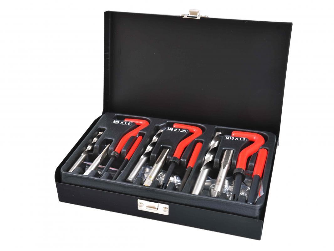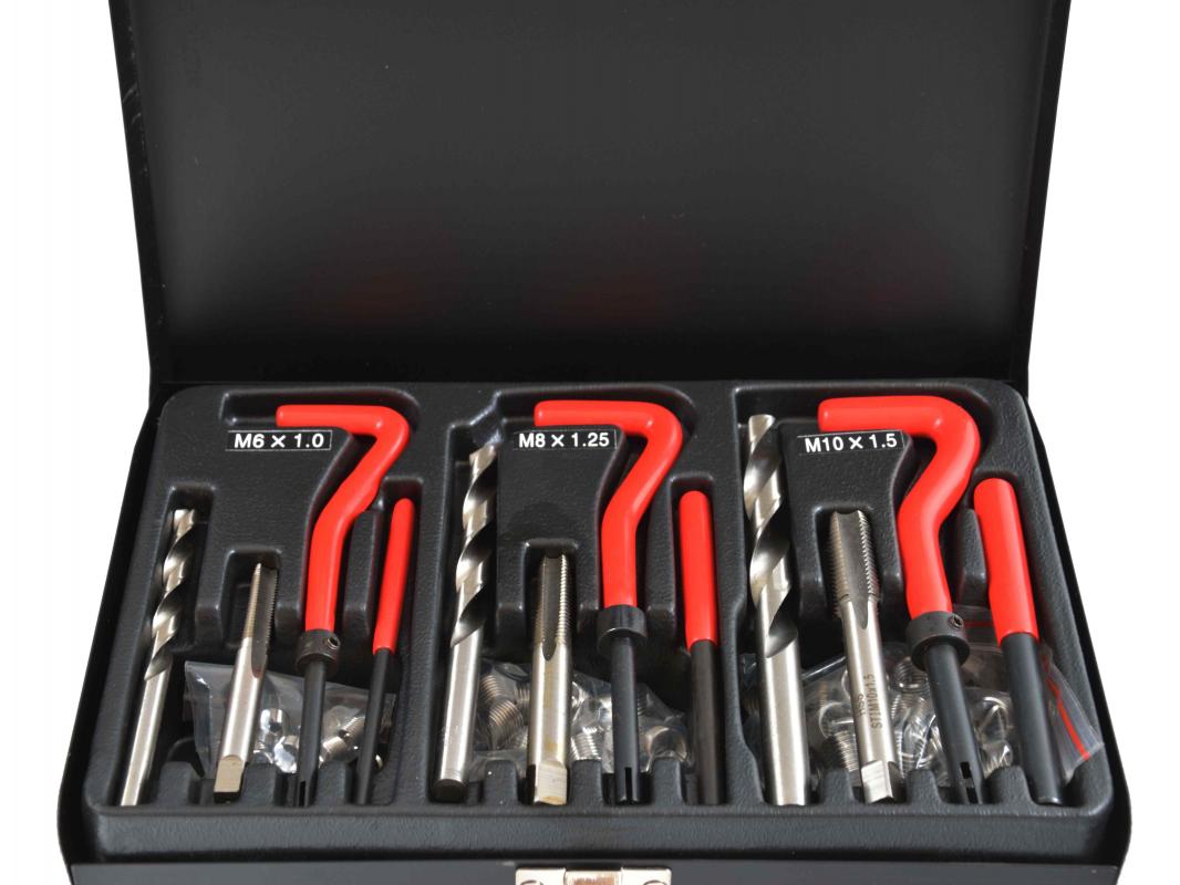 Komplekts M6, M8, M10 vītņu remontam un atjaunošanai. Vienpakāpju krāni nogriež vītni, kurā ir ievietots ciets nerūsējošā tērauda spirālveida ieliktnis. Ieliktņa ievietošanai tiek izmantota vadpoga un trieciens, kas nolauž ieliktņa izvirzīto galu.