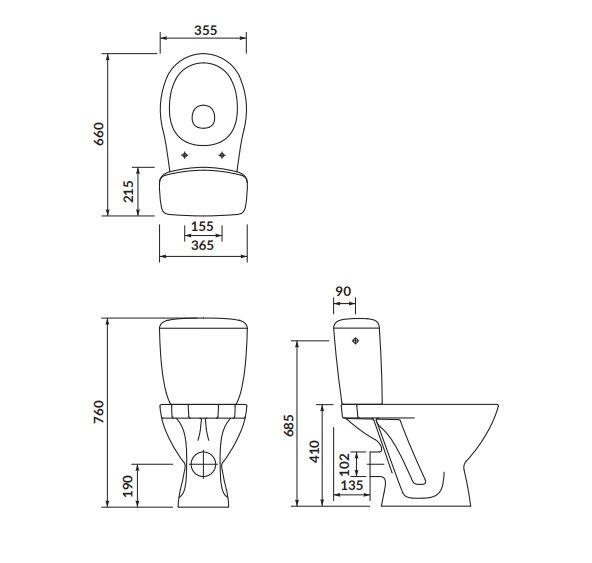 WC kompaktpods Kaskada 010 3/6 ar PP vāku