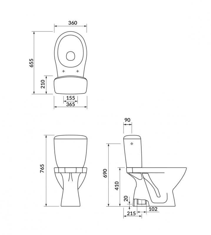 WC kompaktpods Kaskada 207 3/6 ar PP vāku, vertikāls