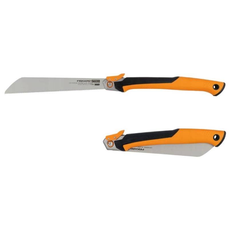 Fiskars rokas zāģis kokam ir profesionāls Pro PowerTooth saliekamais zāģis precīzai koka un citu materiālu zāģēšanai. Optimizēts 13 zobu uz collu asmens ar kaltiem zobiem nodrošina izcilu precizitāti un veiktspēju gan mīkstos kokmateriālos, gan dēļos, PVC un citos būvmateriālos. Elastīgais, plānais asmens ļauj viegli zāģēt arī gar virsmu, savukārt saliekamā konstrukcija ar drošības fiksatoru pasargā asmeni un nodrošina drošu transportēšanu. Ergonomiskais rokturis ar SoftGrip pārklājumu un inovatīvu tekstūru novērš mitruma uzkrāšanos, samazina tulznu veidošanos un garantē drošu satvērienu arī intensīva darba laikā. Āķveida roktura gals nodrošina papildu drošību vilkšanas darbībās, bet dažādas tvēriena pozīcijas ļauj pielāgot zāģi gan precīziem, gan jaudīgiem darbiem. Asmens garums 25 cm.