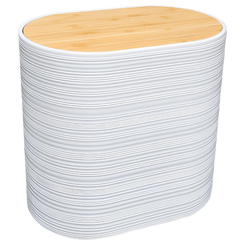 Kompaktais Zinda mini atkritumu konteiners apvieno elegantu dizainu ar praktiskumu, piedāvājot izcilu risinājumu nelielu telpu atkritumu organizēšanai. Tā unikālā teksturētā, viļņotā ārējā virsma baltā krāsā ar bambusa vāku piešķir tam modernu un dabisku izskatu, kas harmoniski iederas jebkurā interjerā. Izgatavots no izturīgas plastmasas kombinācijā ar bambusa vāku, tas nodrošina ilgmūžību un vieglu kopšanu. Šis kompaktais atkritumu grozs ir ideāli piemērots vannas istabai, birojam vai kā papildu atkritumu tvertne virtuvē, apvienojot funkcionalitāti ar mūsdienīgu skandināvu dizainu.