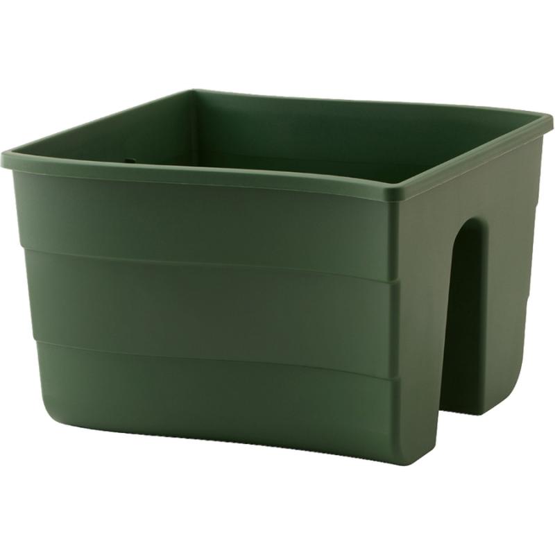 Tumši zaļa balkona kaste Wave. Šī plastmasas dekoratīvā balkona kaste ir viegla, stabila, izturīga pret skrāpējumiem un triecieniem. To ir ļoti viegli piestiprināt pie margām, pateicoties padziļinājumam un īpašiem rokturiem. Aizņem vietu abās margu pusēs. Izmērs (G x P x A) 30 x 27 x 20 cm.