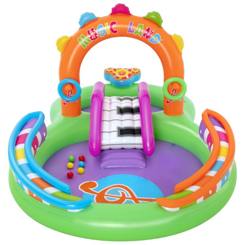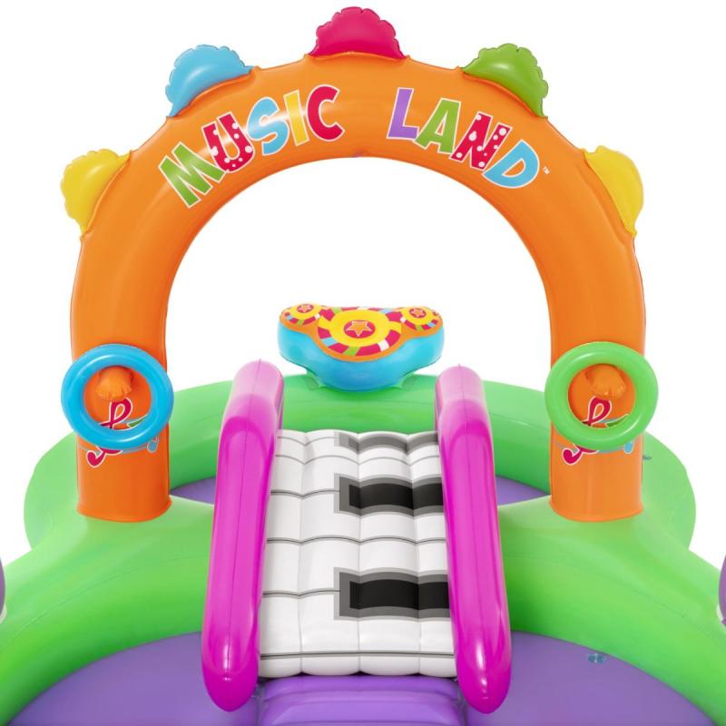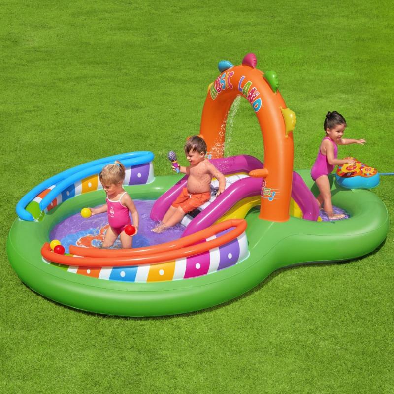 Ar Sing 'n Splash rotaļu baseinu bērni var iepazīt savu muzikālo pusi un plunčāties saulē, pateicoties daudzajām rotaļu iespējām un piepūšamajiem mūzikas instrumentiem. Baseinu veido divi nodalīti baseini, kas savstarpēji savienoti ar noņemamu slidkalniņu. Baseina apašā ir piepūšams piezemēšanās paliktnis, kas nodrošina papildu komfortu, slīdot lejā. Arkā ir iebūvēts ūdens smidzinātājs.