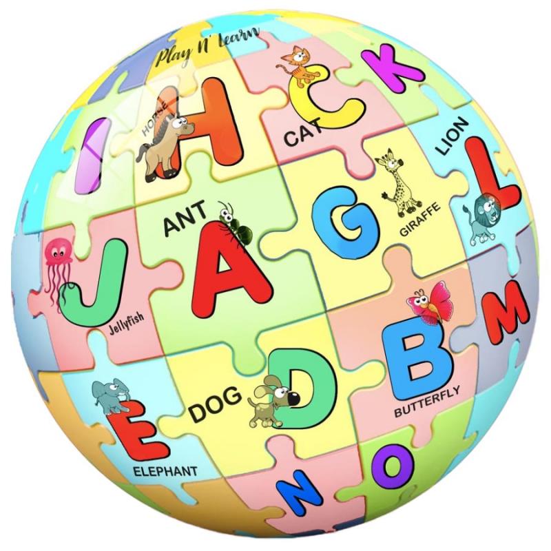Alfabēta mācību bumba ir krāsaina un izglītojoša rotaļlieta, kas apvieno aktīvas spēles ar valodas apguvi un alfabēta mācīšanu. Uz bumbas attēlotie burti kopā ar jautriem zīmējumiem un angļu valodas vārdiem padara mācīšanos rotaļīgu un aizraujošu mazajiem bērniem. Šī daudzfunkcionālā bumba ļauj bērniem vienlaikus attīstīt kustību koordināciju, iemācīties alfabētu un paplašināt vārdu krājumu angļu valodā. Izturīgais PVC materiāls nodrošina ilgstošu lietošanu gan iekštelpās, gan āra spēlēs dārzā vai parkā. Diametrs 14 cm.