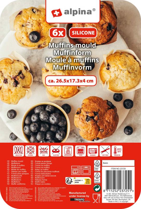 Šī silikona cepšanas forma nodrošina lielisku siltuma sadali, tāpēc smalkmaizītes izcepas perfekti un vienmērīgi apbrūninās. Silikons ir izturīgs pret karstumu, tāpēc to var lietot pat augstā temperatūrā. Cepšanas veidne ir piemērota 6 smalkmaizīšu pagatavošanai. To var izmantot gan parastajā, gan mikroviļņu krāsnī, kā arī to var mazgāt trauku mazgājamā mašīnā. Veidnes izmērs 26.5 x 17.3 x 4 cm.