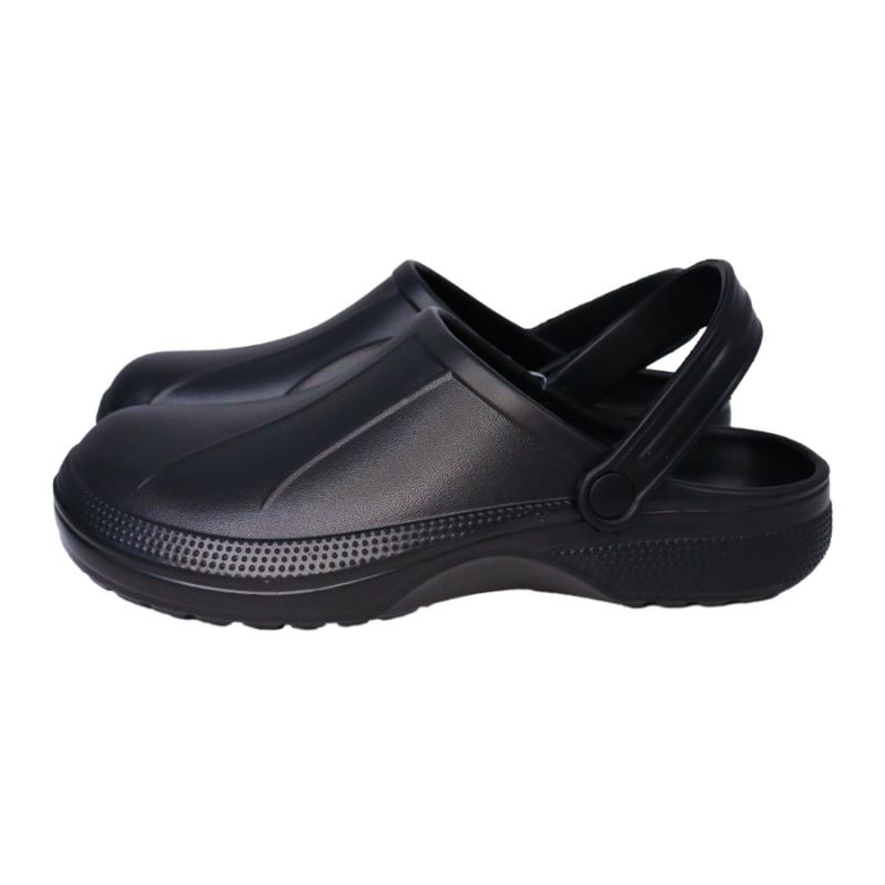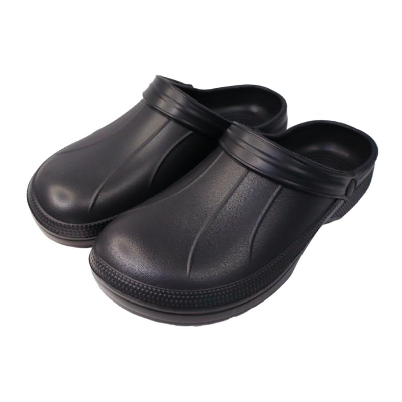 Melnas dārza čības izgatavotas no EVA (etilēnvinilacetāta). EVA materiāla apavi ir lieliski piemēroti ikdienas darbiem un brīvā laika aktivitātēm. Tie ir īpaši viegli, mīksti, elastīgi, ērti, neslīdoši un viegli kopjami. Reljefā virsma iekšpusē pēdas zonā uzlabo asinsriti. Izmērs 41.