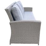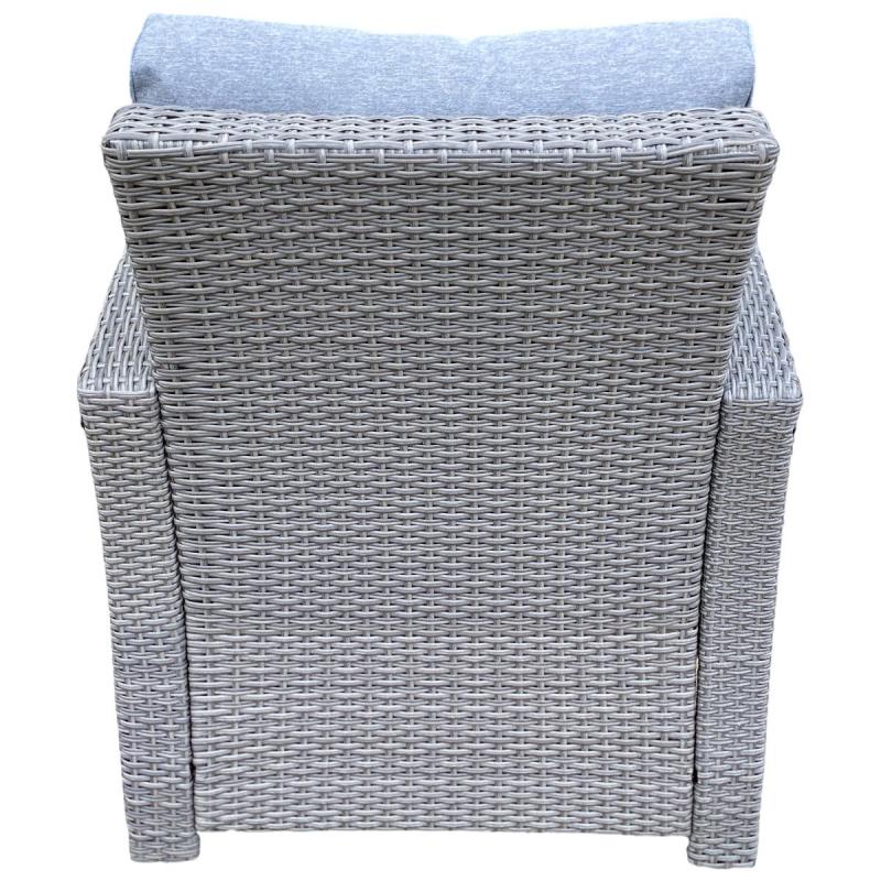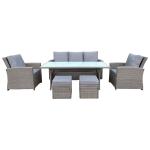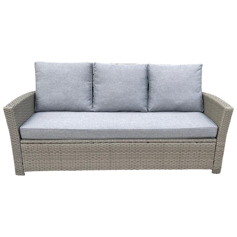 Besk dārza komplekts ir stilīgs āra mēbeļu komplekts, kas ietver ērtu dīvānu, divus krēslus, galdu ar stikla virsmu un divus daudzfunkcionālus pufu krēslus ar uzglabāšanas nodalījumu. Viss komplekts ir izgatavots no augstas kvalitātes sintētiskās rotangas pelēkā krāsā, kas ir izturīga pret UV stariem un mitrumu, padarot to piemērotu āra apstākļiem visas sezonas garumā. Sēdvietas ir aprīkotas ar bieziem, mīkstiem paliktņiem pelēkā krāsā, kas nodrošina maksimālu komfortu ilgstošas atpūtas laikā. Galda virsma ir izgatavota no stipra rūdītā stikla, kas ir viegli tīrāms un izturīgs ikdienas lietošanai. Pufu krēsli darbojas gan kā sēdvietas, gan kā praktiskas uzglabāšanas kastes dārza piederumiem vai spilveniem. Komplekts ir ideāla izvēle terases, dārza vai iekšpagalma iekārtošanai, nodrošinot ērtību un eleganci āra atpūtas zonā.