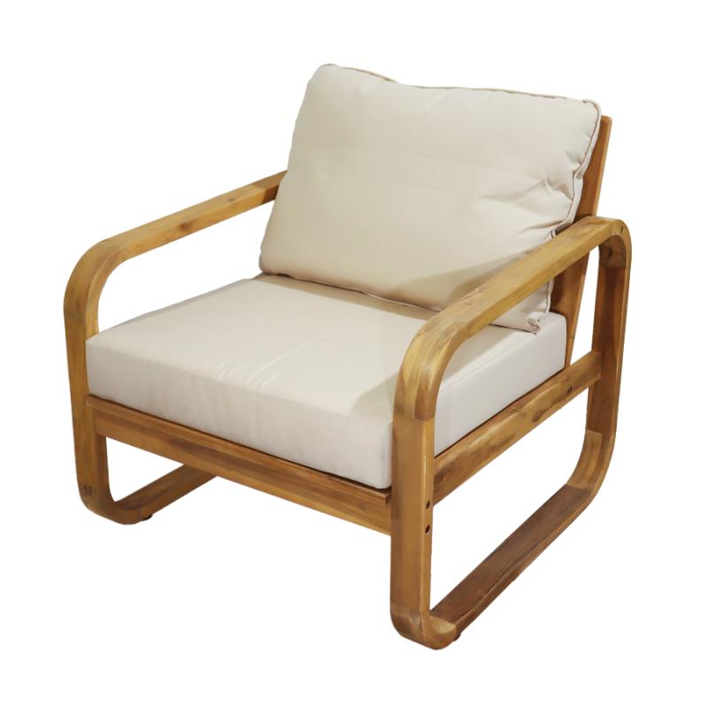 Dārza mēbeļu komplekts ērtai atpūtai svaigā gaisā. Komplektā ietilpst divvietīgs dīvāns, divi komfortabli krēsli un gaumīgs kafijas galdiņš. Mēbeles izgatavotas no FSC sertificēta 100% akācijas koka ar gaiša tīkkoka toņa apdari, kombinējot to ar izturīgām polipropilēna virvēm un smilškrāsas spilveniem ar 230 g poliestera pārklājumu, kuru pildījumā izmantotas D20 putas un šķiedras, nodrošinot īpašu komfortu. Komplektu raksturo mūsdienīgs dizains, kvalitatīvi materiāli un piemērotība lietošanai uz terases, balkona vai dārzā. Tas ir viegli kopjams, izturīgs pret laikapstākļiem un piemērots ilgstošai lietošanai, saglabājot stilīgu izskatu un funkcionalitāti.