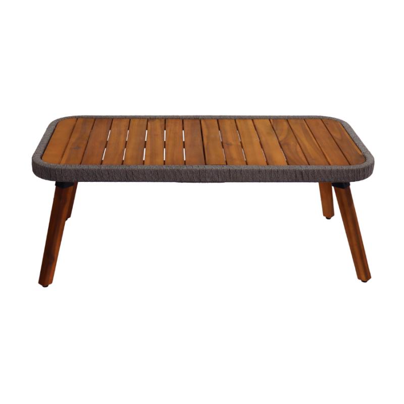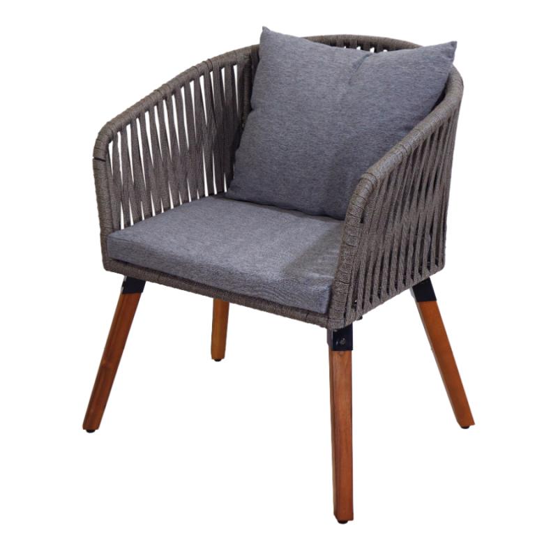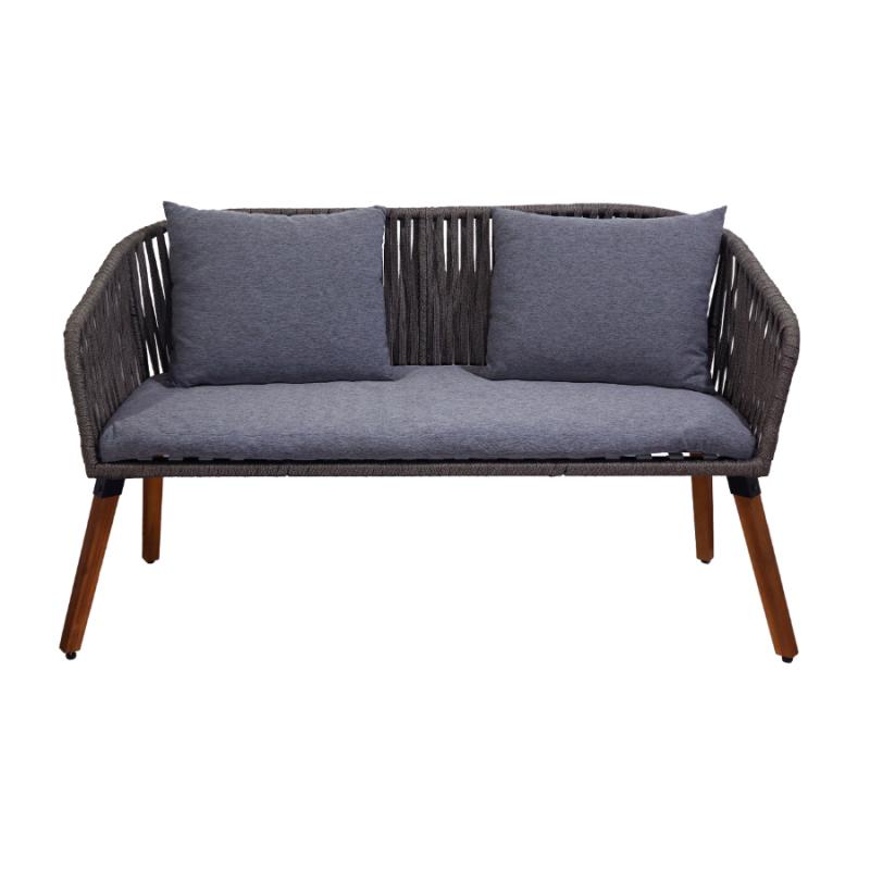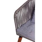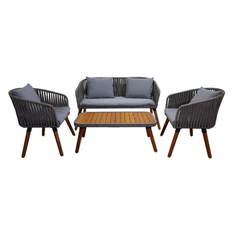 Krēslu un galda komplekts dārzam veidots mūsdienīgā, elegantā stilā, izmantojot izturīgas akācijas koka kājas konstrukcijām un izsmalcinātu poliestera virvju pinumu sēdvietu un atzveltņu apdarē. Komplektā ietilpst divi ērti krēsli (60 x 70 x 75 cm), ietilpīgs dīvāns (130 x 70 x 75 cm) un taisnstūrveida galds (100 x 50 x 39 cm), kas nodrošina pietiekami daudz vietas ģimenes vai draugu kopā sanākšanai. Krēslu un dīvāna mīkstie spilveni ar 6 cm biezu polsterējumu un 220 g/m2 poliestera auduma virsmu sniedz īpašu komfortu, savukārt stilīgais virvju pinums piešķir komplektam vizuālu vieglumu un gaisīgumu. Šis komplekts lieliski iederēsies dārzā, terasē vai uz balkona, radot mājīgu un elegantu atpūtas zonu.