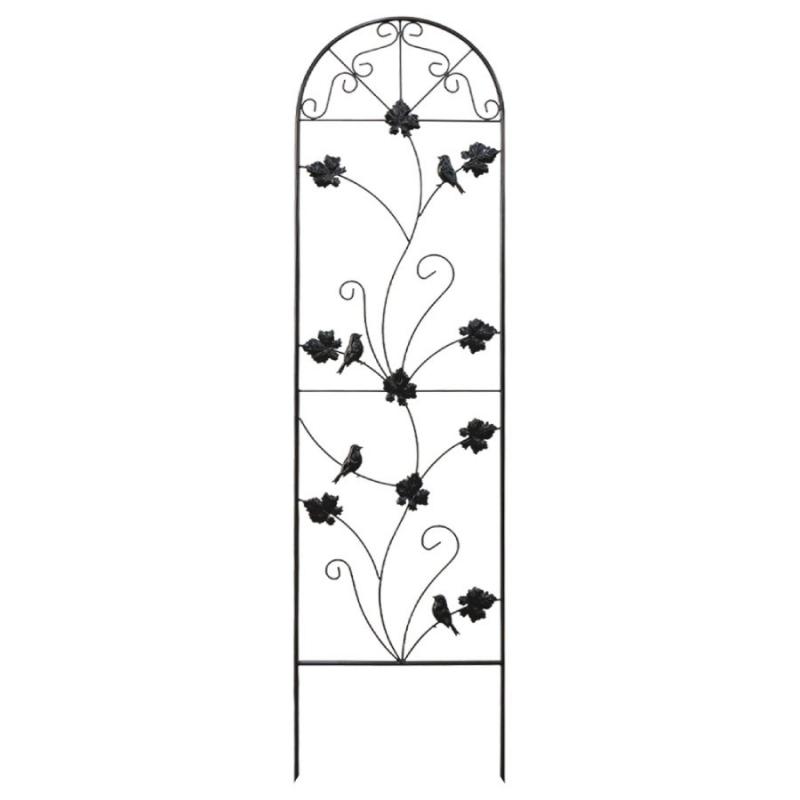 Besk dekoratīvais metāla režģis ir izsmalcināts melns kāpelējošo augu balsts ar lapu un putnu rotājumiem, kas dārzā rada romantisku un dabas iedvesmotu noskaņu. Arkveida augšdaļa un vijīgie metāla ornamenti piešķir režģim elegantu izskatu, padarot to par izteiksmīgu akcentu pie sienas, žoga vai ieejas zonas. Tas nodrošina stabilu atbalstu vīteņaugiem, rozēm un citiem kāpelējošiem augiem, palīdzot tiem augt taisni un skaisti, vienlaikus aizsedzot neizskatīgas virsmas. Režģis ir viegli uzstādāms, iedurot stabus zemē, un piemērots gan maziem, gan lielākiem dārziem, terasēm vai pagalmiem. Izmērs 43 x 162 cm.