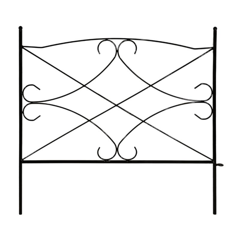 Besk dekoratīvais žogs ir elegants melnā krāsā krāsots metāla dārza žogs ar smalku ornamentālu rakstu. Šis nelielais žoga elements ir ideāls risinājums dārza zonu nodalīšanai, dobes vai puķu dārziņa iekārtošanai, kā arī kā dekoratīvs akcents ap dažādiem stādījumiem. Melnā krāsa padara žogu universālu un piemērotu dažādiem dārza stiliem, savukārt izturīgā metāla konstrukcija nodrošina ilgmūžību āra apstākļos. Žogs viegli uzstādāms, iedurot stabus zemē, un lieliski sader gan ar mūsdienīgu, gan klasisku dārza dizainu, piešķirot tam sakoptu un stilīgu izskatu. Izmērs 60 x 60 cm.