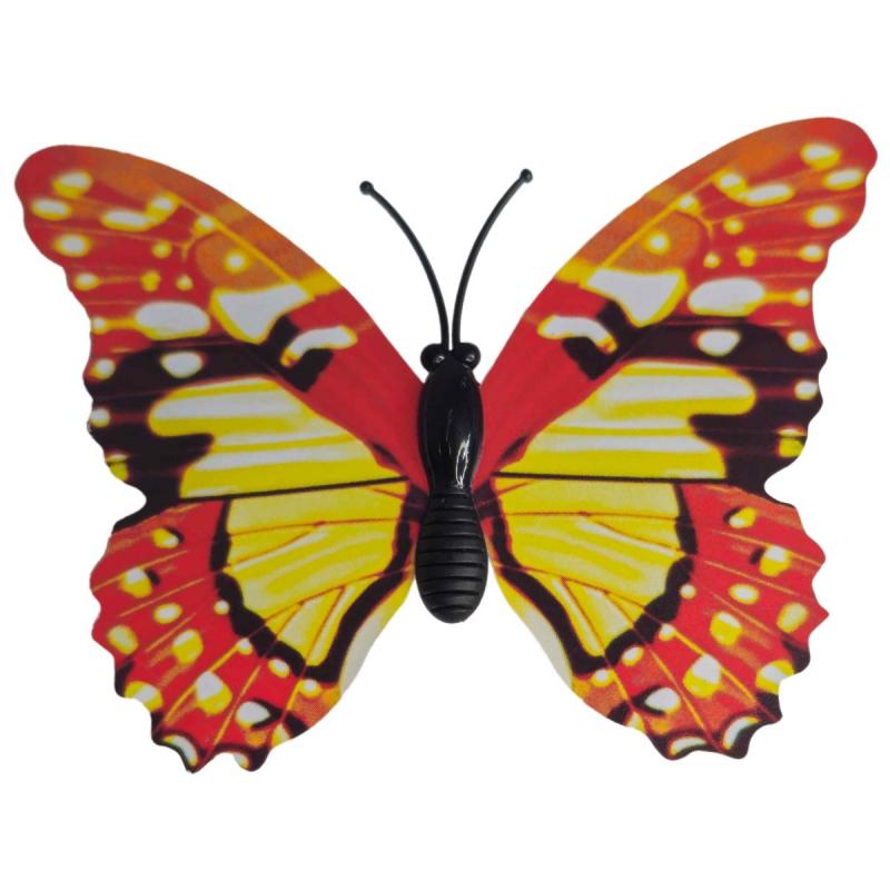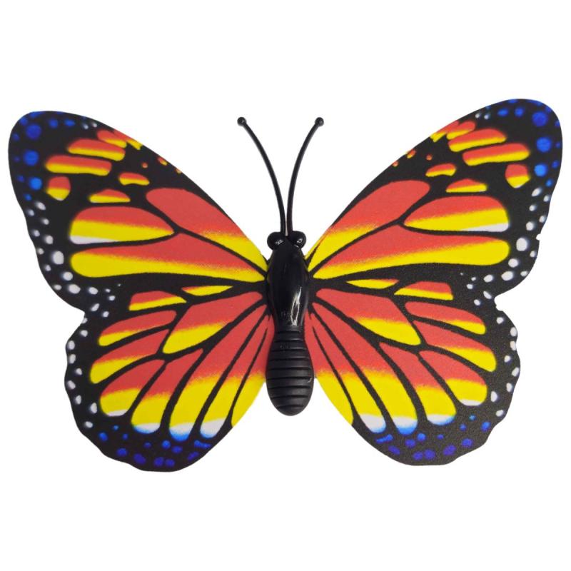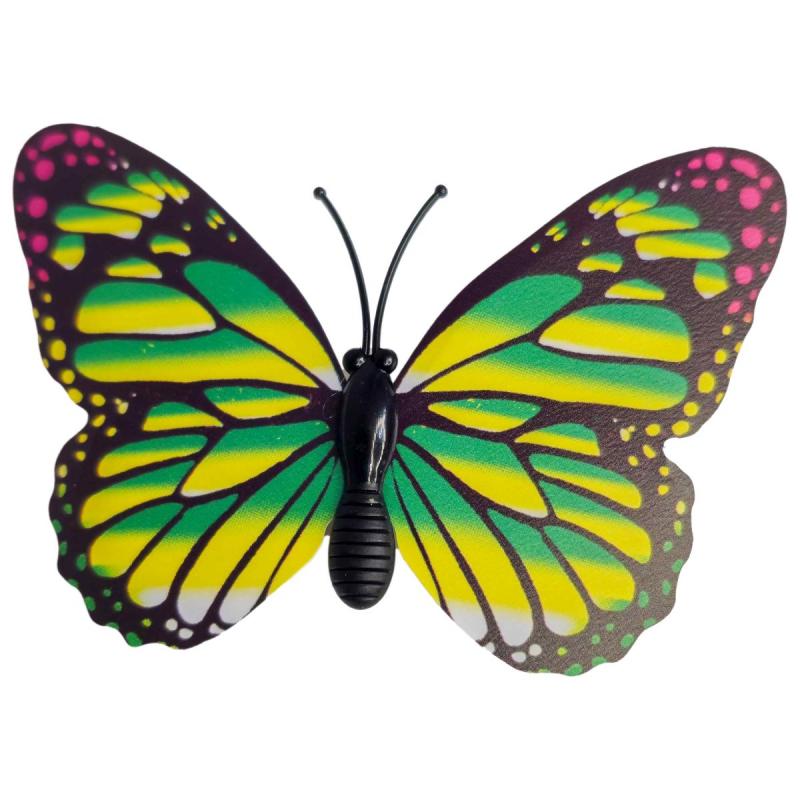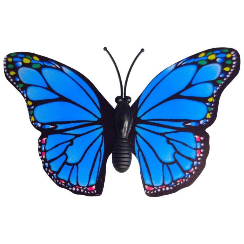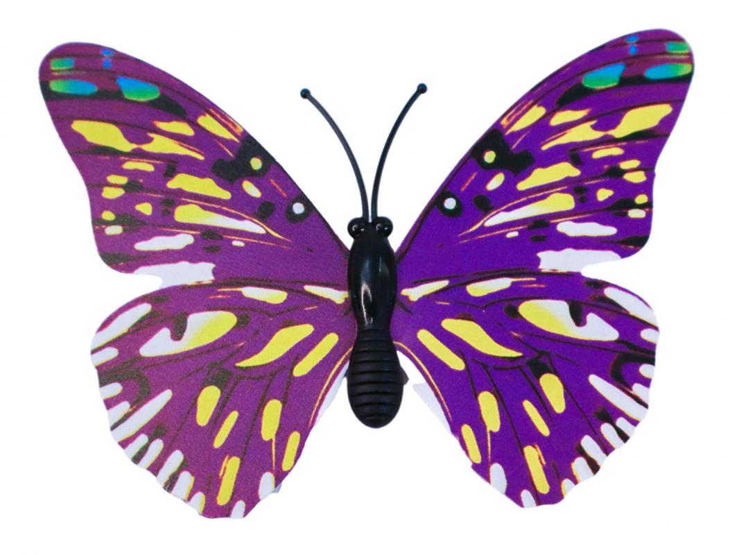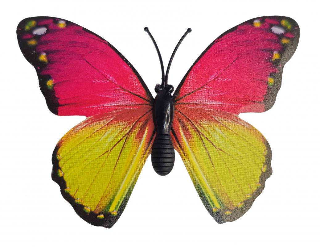 Dekoratīvais taurenis ar klipsi ir košs un pamanāms akcents, kas piešķir dzīvīgumu ziedu kompozīcijām, svētku noformējumam vai mājas interjeram. Pateicoties klipsim, to var viegli piestiprināt pie dažādiem objektiem, piemēram, aizkariem, dāvanu lentēm vai mākslīgajiem augiem. Spilgtie spārnu raksti padara tauriņu vizuāli pievilcīgu jebkurā sezonā. Izgatavots no viegla materiāla, kas saglabā formu. Izmērs 7 cm.