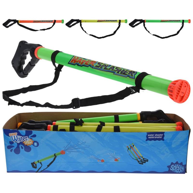 Liela izmēra ūdens šāvējs aktīvām vasaras spēlēm dārzā, pludmalē vai pie baseina. Garais korpuss ar ērtu rokturi ļauj ievilkt un izšaut spēcīgu ūdens strūklu, padarot ūdens kaujas dinamiskas un aizraujošas gan bērniem, gan pieaugušajiem. Regulējamā plecu siksna atvieglo nēsāšanu un ļauj pistoli ērti paņemt līdzi izbraucienos vai atpūtā pie ūdens. Izturīgā plastmasas konstrukcija ir piemērota ilgstošai lietošanai svaigā gaisā un vienkāršai kopšanai pēc spēles. Garums 69 cm.