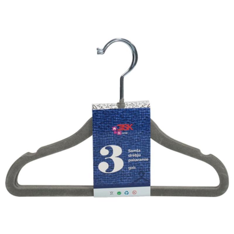 Drēbju pakaramais samta 29x20cm, 3gb pelēks
