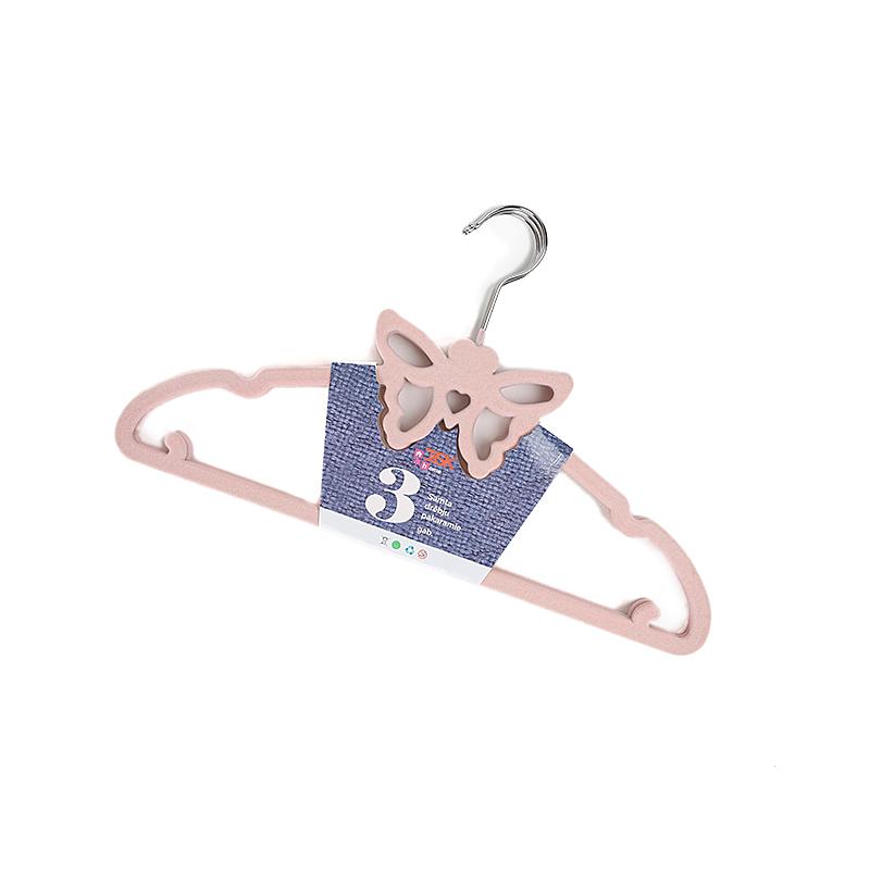 BESK samta drēbju pakaramie ar tauriņa dekoru ir izgatavoti no izturīgas plastmasas ar samta pārklājumu, kas efektīvi pasargā apģērbu no skrāpējumiem un novērš noslīdēšanu. Šie pakaramie ir īpaši piemēroti bērnu vai vieglu apģērbu kārtošanai, nodrošinot kārtību un drošību garderobē. Metāla āķis ļauj pakaramo viegli novietot skapī, savukārt samta virsma nodrošina papildu saudzīgumu apģērbam. Komplektā ir trīs rozā krāsas pakaramie, kas piemēroti dažādu apģērbu uzglabāšanai. Izmērs 40 x 20 cm.