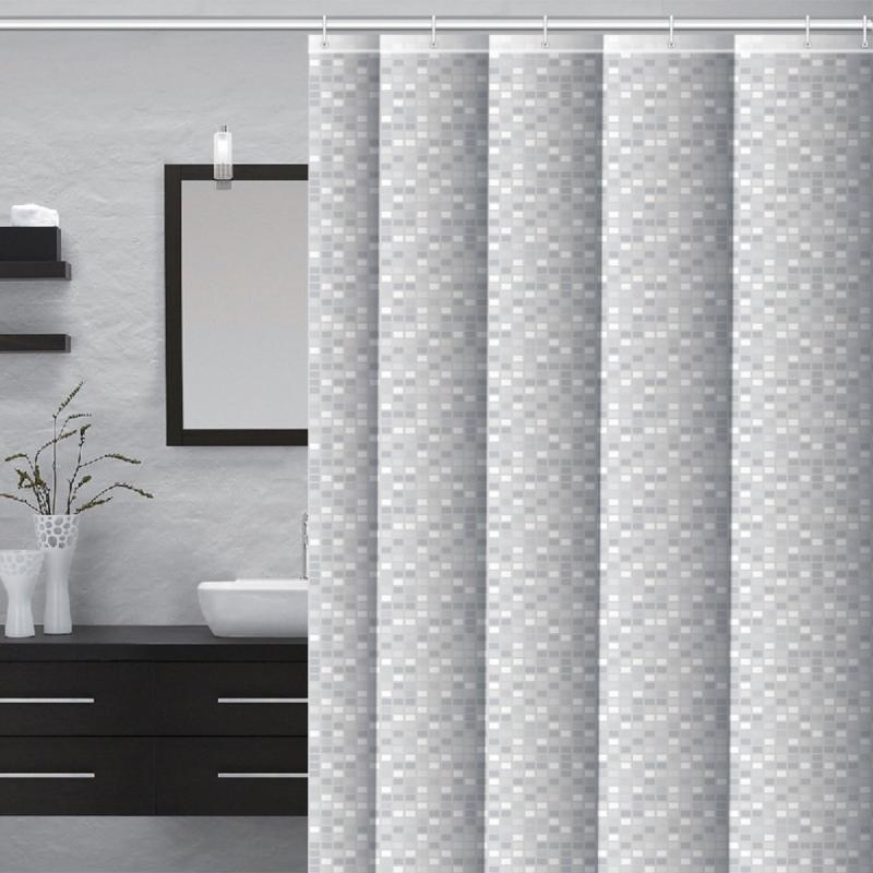 Minimālistisks dušas aizkars ar mazu kvadrātiņu mozaīkas rakstu pelēkos un baltos toņos radīs mūsdienīgu un elegantu atmosfēru vannas istabā. Izgatavots no augstas kvalitātes 100% PEVA materiāla, kas ir ūdensizturīgs, viegli kopjams un videi draudzīgāks par PVC. Aizkara izmērs 180 x 180 cm, komplektā plastmasas āķi.