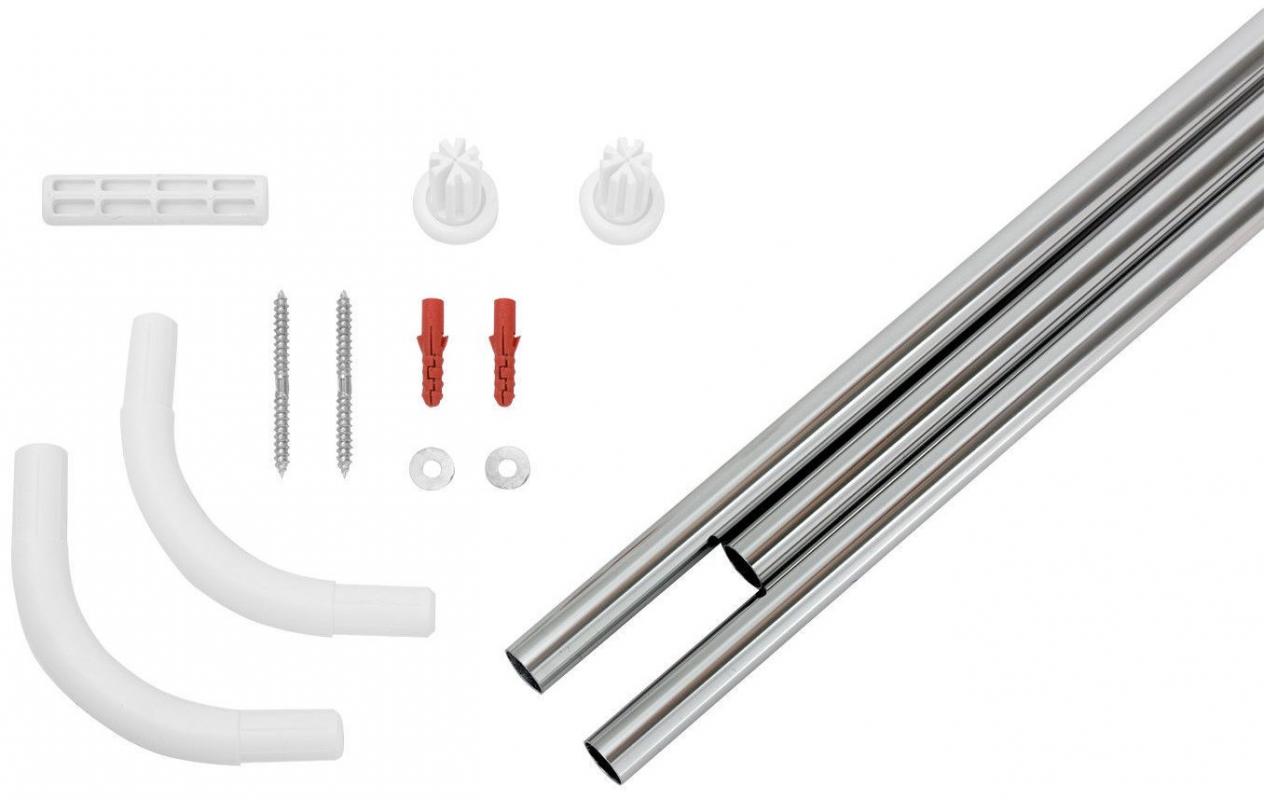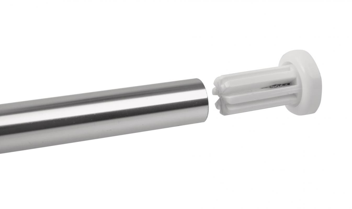 Hromēta universāla dušas aizkaru stanga. Pateicoties saīsināmajām alumīnija caurulēm, dušas stangu var viegli pielāgot individuālām vajadzībām. Vienkārša montāža ar skrūvēm un dībeļiem drošai nostiprināšanai un plastmasas sienas kronšteiniem. Piemērots dušas paliktņiem un vannām ar izmēriem aptuveni 80 x 80 cm, 90 x 90 cm, 165 x 70 cm. Caurules diametrs 20 mm. Komplektā ietilpst montāžas materiāli (skrūves un dībeļi).