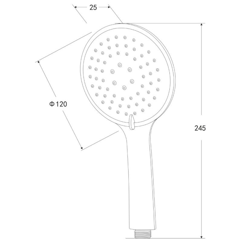 AB dušas klausule hromētā krāsā ar 3 režīmiem nodrošina plašas iespējas dušošanās pieredzes pielāgošanai individuālajām vajadzībām. Šī lielizmēra apaļā dušas galviņa piedāvā trīs dažādus ūdens plūsmas režīmus ar bagātīgu strūklu izvietojumu, kas ļauj izvēlēties piemērotāko intensitāti un veidu. Hromētais virsmas pārklājums garantē ne tikai elegantu izskatu, bet arī ilgstošu izturību pret koroziju un vienkāršu ikdienas kopšanu. Liels dušas galvas diametrs nodrošina plašu ūdens pārklājumu un komfortablu dušošanās sajūtu ikdienas lietošanā. Dušas galvas diametrs 12 cm, kopējais augstums 24.5 cm, G1/2 collu pieslēgums.