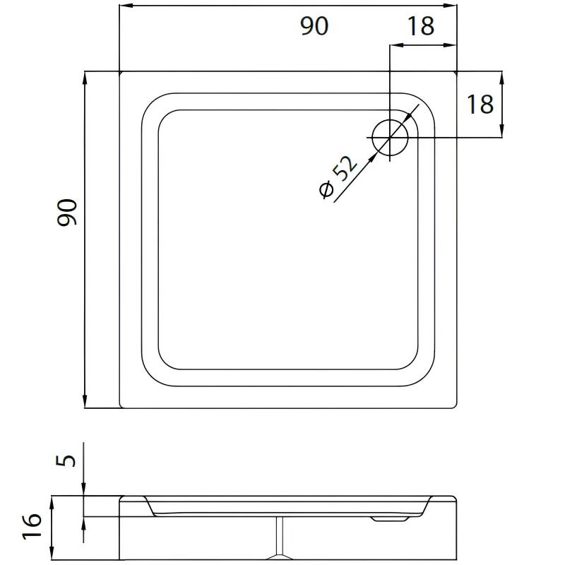 Dušas paliktnis PRIVIA 900x900mm, akrila, kantains