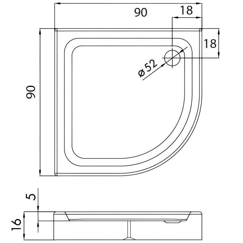 Dušas paliktnis PRIVIA 900x900mm, akrila, R55