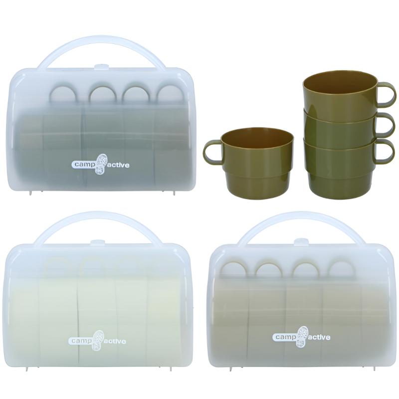 Krūzīšu komplekts ar četrām vieglas plastmasas krūzītēm ir praktisks risinājums ceļošanai, piknikiem vai kempingiem. Izgatavotas no izturīga PVC materiāla, krūzītes ir viegli kopjamas un piemērotas atkārtotai lietošanai. Komplekts tiek piegādāts kompaktā un caurspīdīgā uzglabāšanas kastē ar rokturi, kas atvieglo pārnēsāšanu un uzglabāšanau. Krūzīšu dizains ļauj tās ērti salikt vienu otrā, ietaupot vietu. Ideāli piemērotas lietošanai dabā vai ceļā, kad svarīga ir gan funkcionalitāte, gan ērtība.