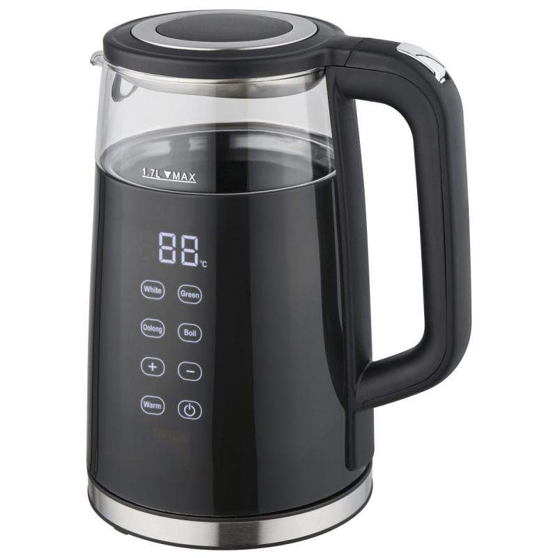 Elektriskā tējkanna ar 1.7 l ietilpību un 360° rotācijas pamatni ir ērta un praktiska ikdienas lietošanai. Tējkannas augstas kvalitātes borsilikāta stikla korpuss ar polipropilēna pārklājumu ārpusē ir izturīgs un noturīgs pret traipiem, nodrošinot ilgstošu lietošanu. Slēptais nerūsējošā tērauda sildelements un automātiskā izslēgšanās funkcija, kad ūdens ir uzvārījies, nodrošina lietotāja ērtības un drošību. Digitālais ekrāns un iepriekšiestatītas temperatūras opcijas ļauj precīzi kontrolēt ūdens sasilšanu dažādu veidu tējām (baltā tēja 70℃, zaļā tēja 80℃, Oolong tēja 90℃, melnā un zāļu tējas 100℃). Elektroniskā vadība, siltuma uzturēšana un atmiņas funkcija padara šo tējkannu par izcilu izvēli mūsdienīgai virtuvei. Jauda 1850 - 2200 W garantē ātru ūdens uzvārīšanu.